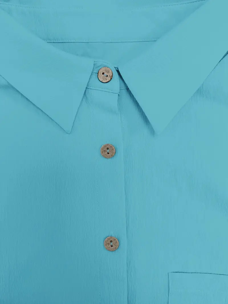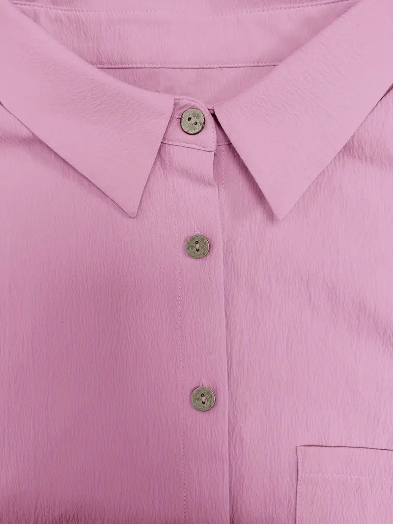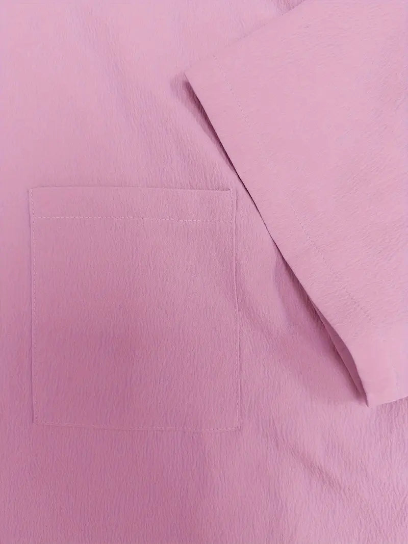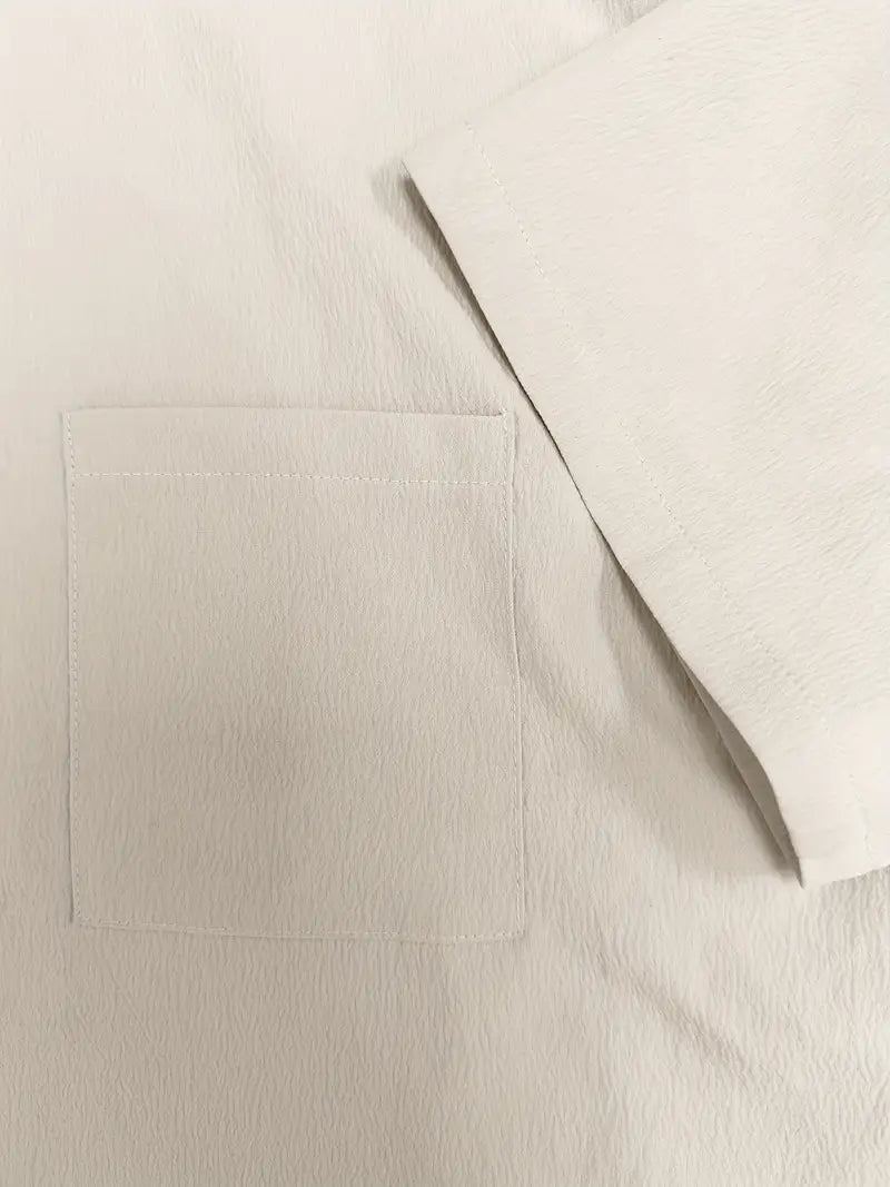 Vielseitiger Alltagsstil: Dieser zweiteilige Satz vereint Komfort und Flexibilität in einem einheitlichen Outfit. Ob Sie Besorgungen erledigen oder zu Hause entspannen, er passt sich Ihrem Tempo an. Die Kombination aus locker sitzenden Kurzen Hosen und einem Oberteil mit Knöpfen schafft eine klare, lässige Silhouette. Kombinieren Sie ihn mit Sandalen, Turnschuhe oder Pantoletten für einen sofortigen Schau.