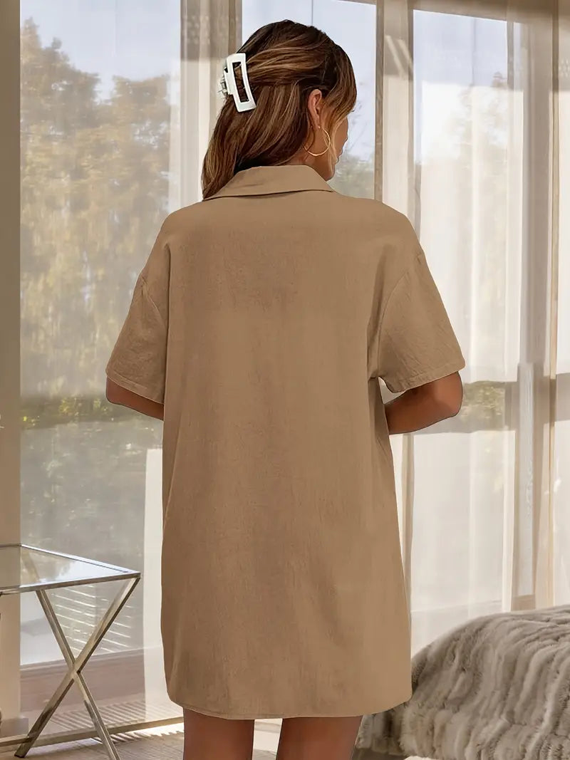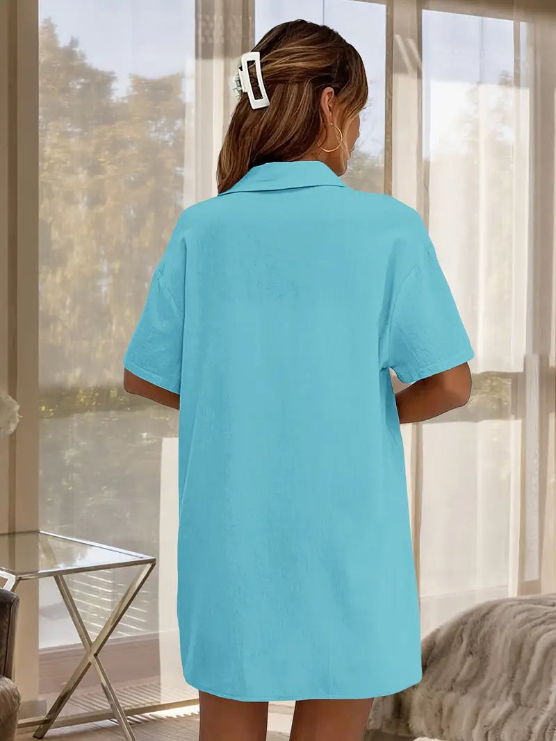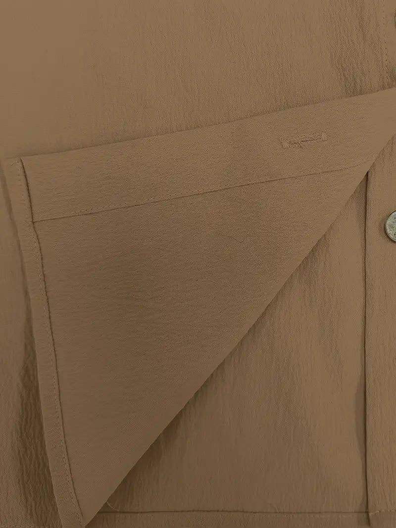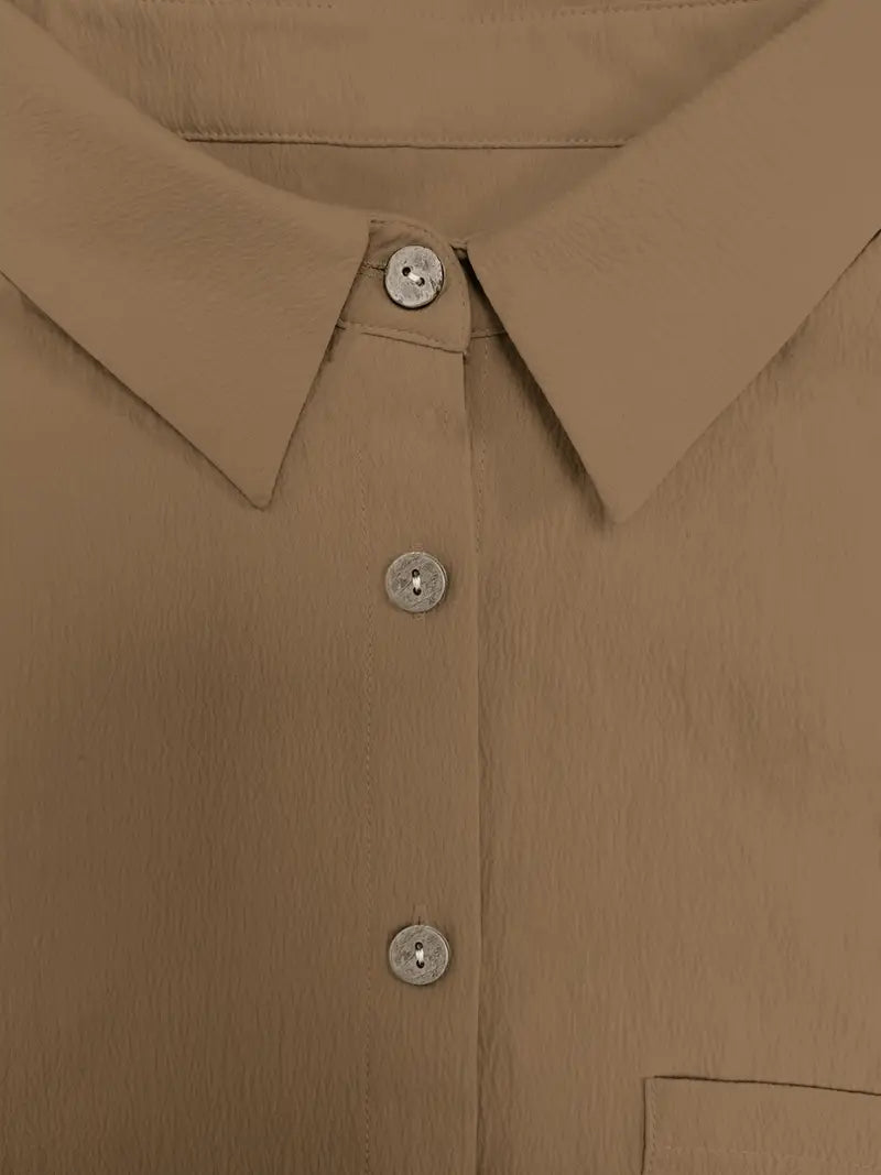 Vielseitiger Alltagsstil: Dieser zweiteilige Satz vereint Komfort und Flexibilität in einem einheitlichen Outfit. Ob Sie Besorgungen erledigen oder zu Hause entspannen, er passt sich Ihrem Tempo an. Die Kombination aus locker sitzenden Kurzen Hosen und einem Oberteil mit Knöpfen schafft eine klare, lässige Silhouette. Kombinieren Sie ihn mit Sandalen, Turnschuhe oder Pantoletten für einen sofortigen Schau.