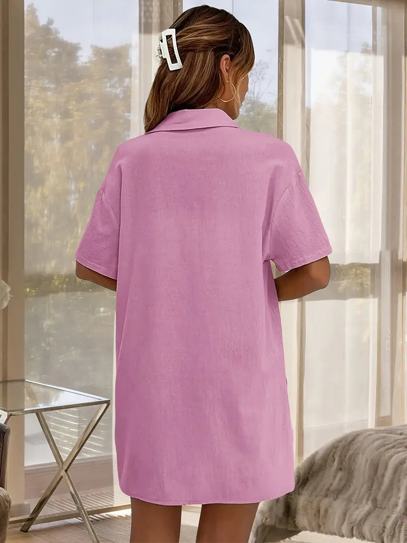 Schickes Oberteil mit Knöpfen: Das kurzärmelige Hemd mit Knöpfen sorgt für Struktur und wirkt gleichzeitig lässig. Tragen Sie es offen über einem Tanktop oder zugeknöpft als eigenständiges Oberteil. Es lässt sich leicht kombinieren und eignet sich daher ideal für den Übergang von drinnen nach draußen. Der längere Schnitt schmeichelt zudem einer Vielzahl von Figurtypen.